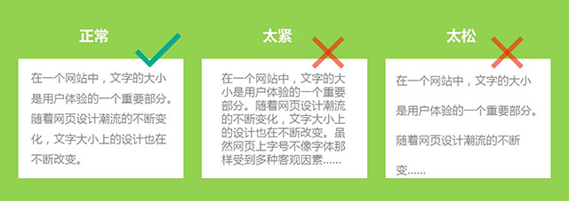 行距是影響易讀性非常重要的因素,過寬的行距會會讓文字失去延續性,影響閱讀;而行距過窄,則容易出現跳行。