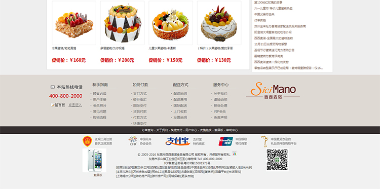 東莞市西西麥諾食品有限公司旗下網(wǎng)站:西西麥諾蛋糕網(wǎng),總部位于廣東,十年專業(yè)鮮花蛋糕禮品配送,網(wǎng)絡(luò)遍及全國各地。兢兢業(yè)業(yè)全年無休,24小時為客戶提供優(yōu)質(zhì)服務(wù)。北京、上海、廣州、深圳、東莞、濟南、青島、煙臺、哈爾濱、長春、沈陽、大連、太原、汕頭、汕尾、福州、天津、石家莊、南京、蘇州、杭州、寧波、福州、廈門等城市均已開設(shè)分公司。